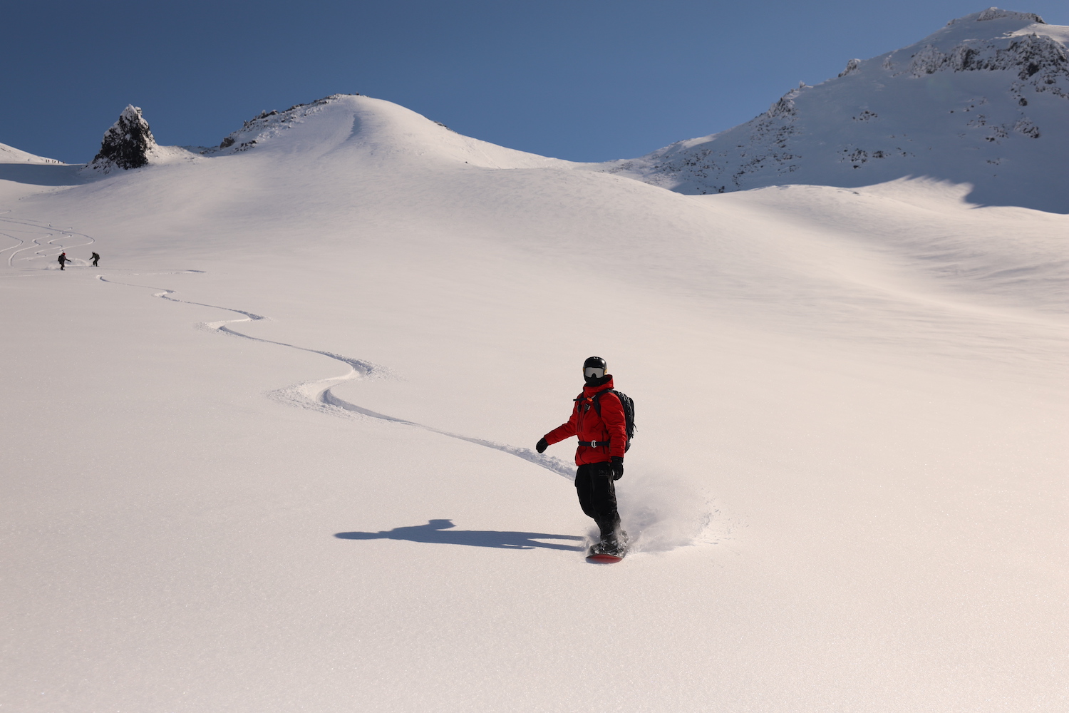 Маршруты для спусков выбираются гидами в соответствии с уровнем подготовки группы, а также в зависимости от погодных условий и кондиции снега.
