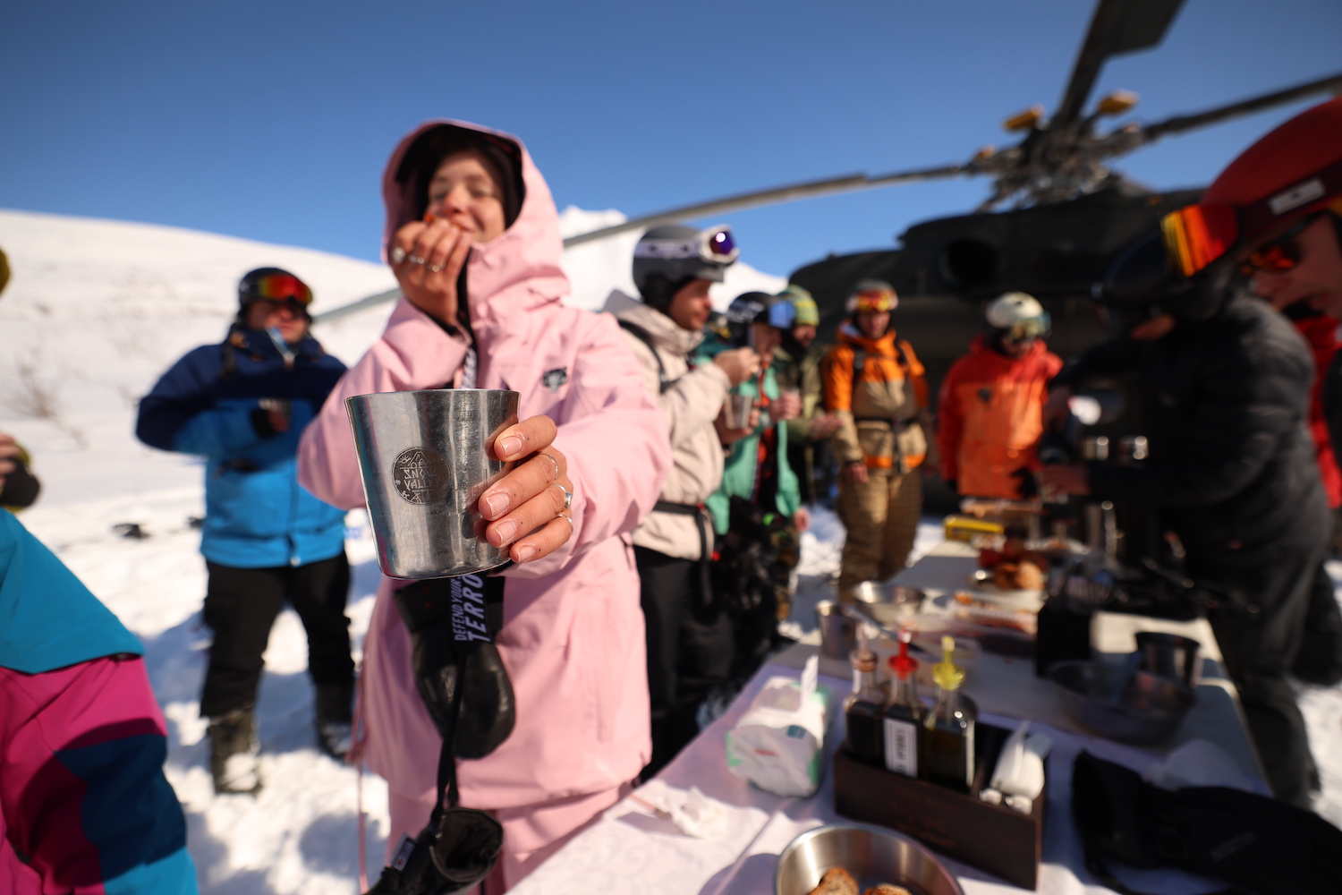 Подготовка к программе; Вылет на вертолете в составе группы с вертолетной площадки отеля «Снежная Долина»; Программа катания с гор и вулканов; Ланч, продолжение катания; Окончание программы, возвращение в отель; Отдых в термальных источниках.