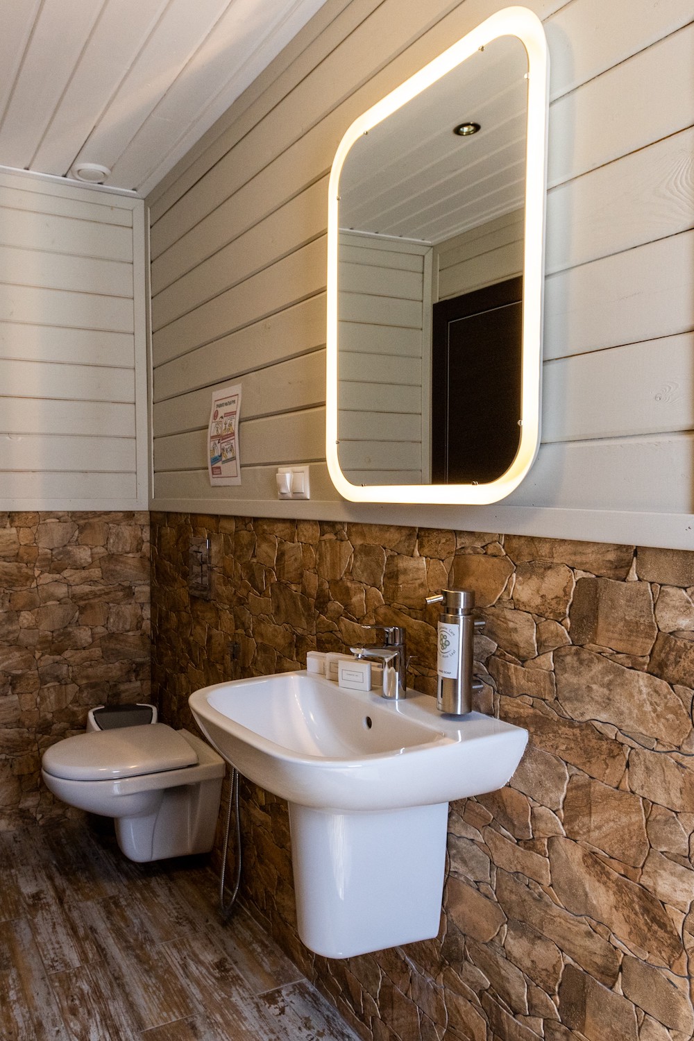 На каждом этаже располагается по пять номеров с санузлом в каждом.