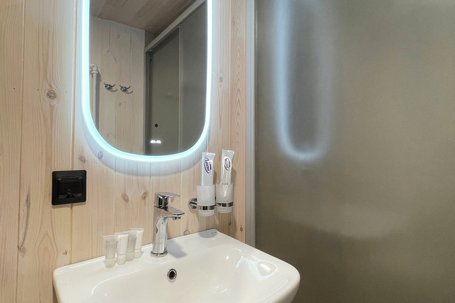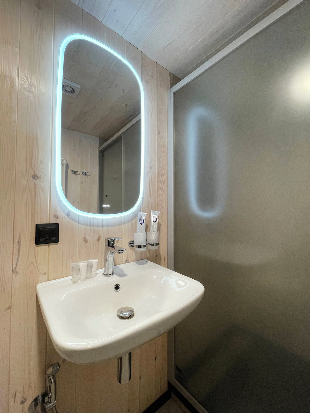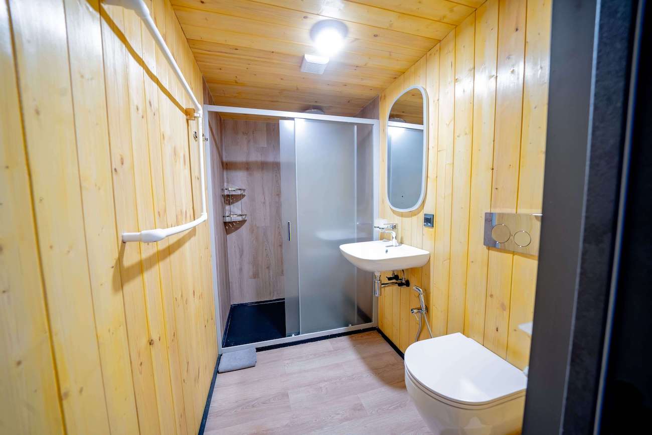 Номер "Standart Twin"- это просторная теплая комната, общей площадью 25 кв.м. с двумя односпальными кроватями, личной зоной душевой/санузел и панорамными окнами.